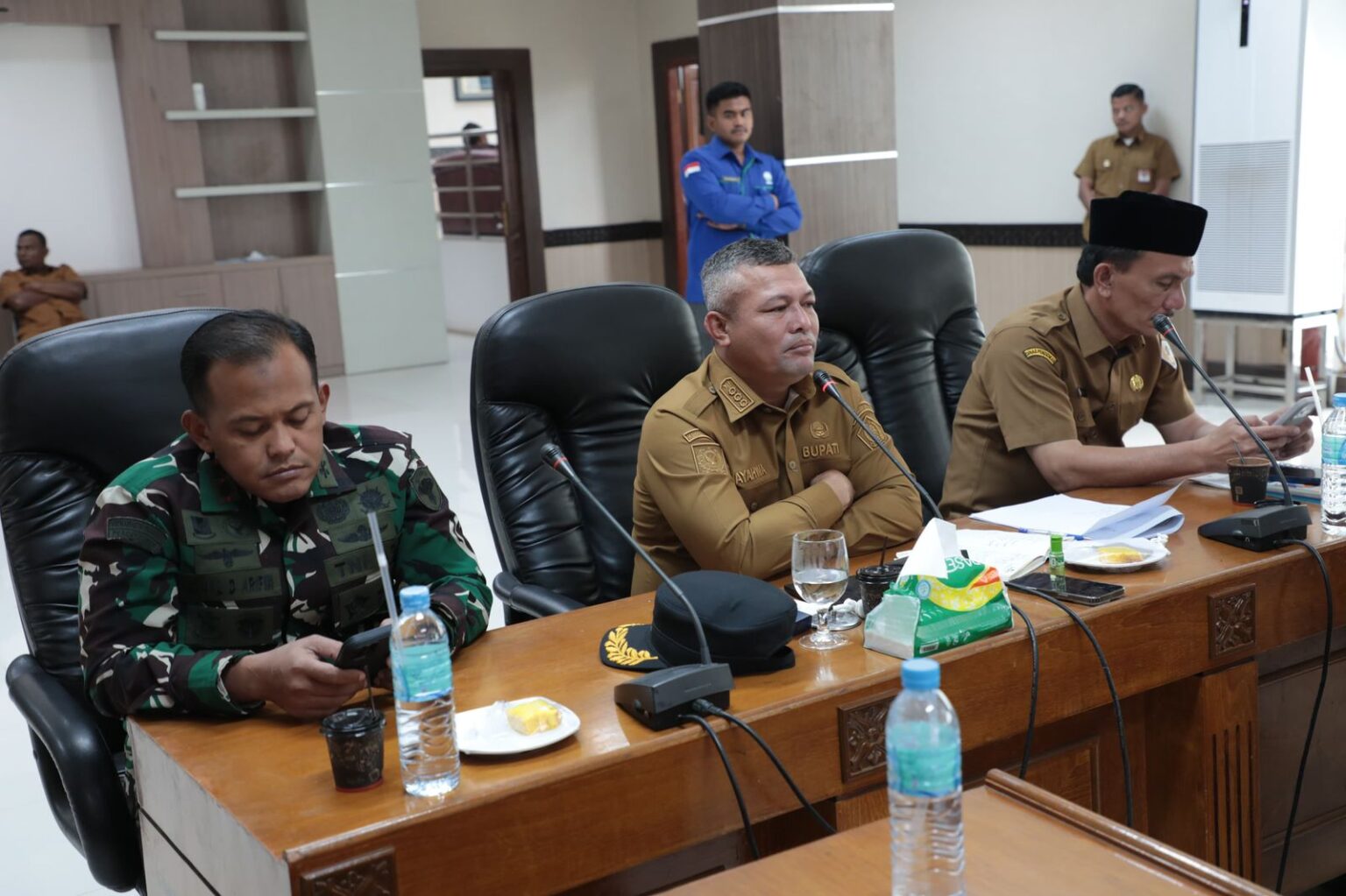 Rapat dihadiri unsur DPRK Aceh Utara, Forkopimda yang terdiri dari Dandim, Kapolres Aceh Utara, Kapolres Lhokseumawe, dan Kepala Kejaksaan Negeri (Kajari), serta jajaran Asisten Sekdakab, Kepala OPD, dan para Camat dari kecamatan terdampak banjir.