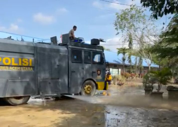 Selain dump truck dari Satuan Brimob Polda Banten dan alat berat buldoser serta beco mini dari tokoh masyarakat T. Thamrin atau Ampon, pihak kepolisian juga membantu percepatan pembersihan menggunakan mobil water cannon. Kendaraan taktis ini menyemprotkan air bertekanan tinggi untuk membersihkan lumpur di halaman dan akses jalan sekolah, sehingga proses pemulihan berlangsung lebih cepat.