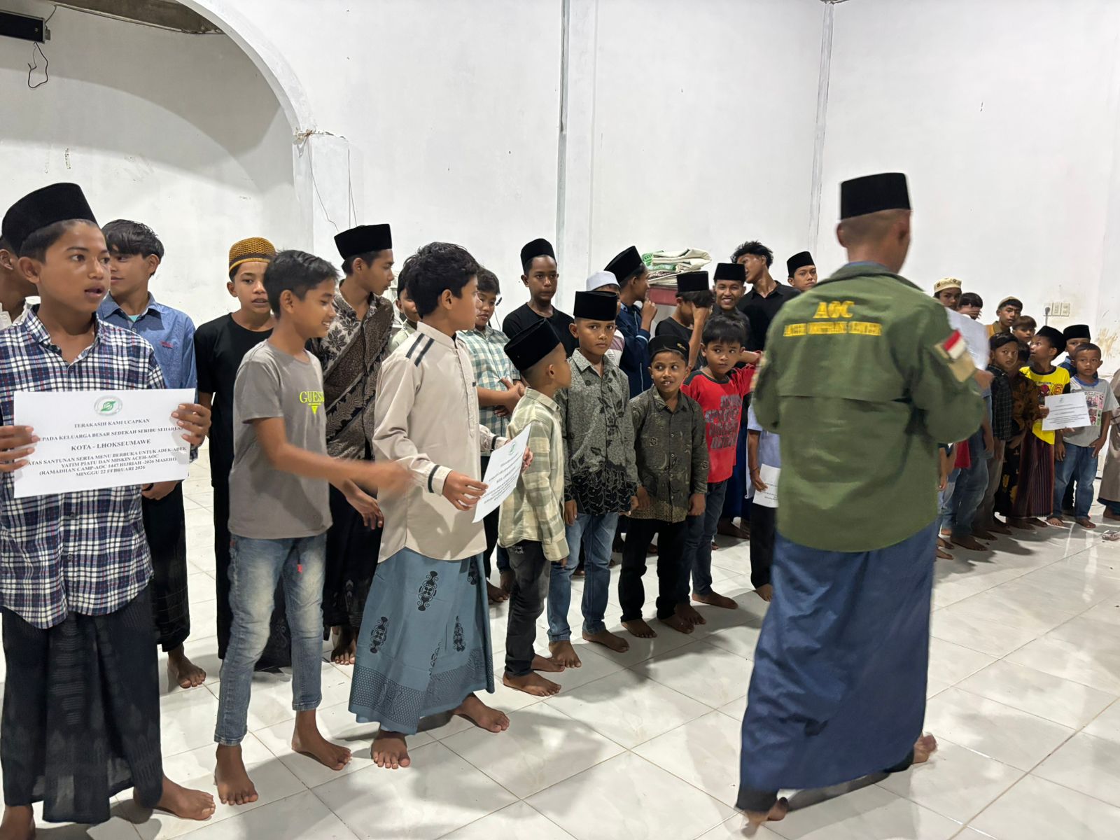 Kegiatan yang dipusatkan di Camp AOC Panton Labu, Aceh Utara, ini diisi dengan penyaluran santunan sekaligus buka puasa bersama bagi anak-anak yatim piatu.