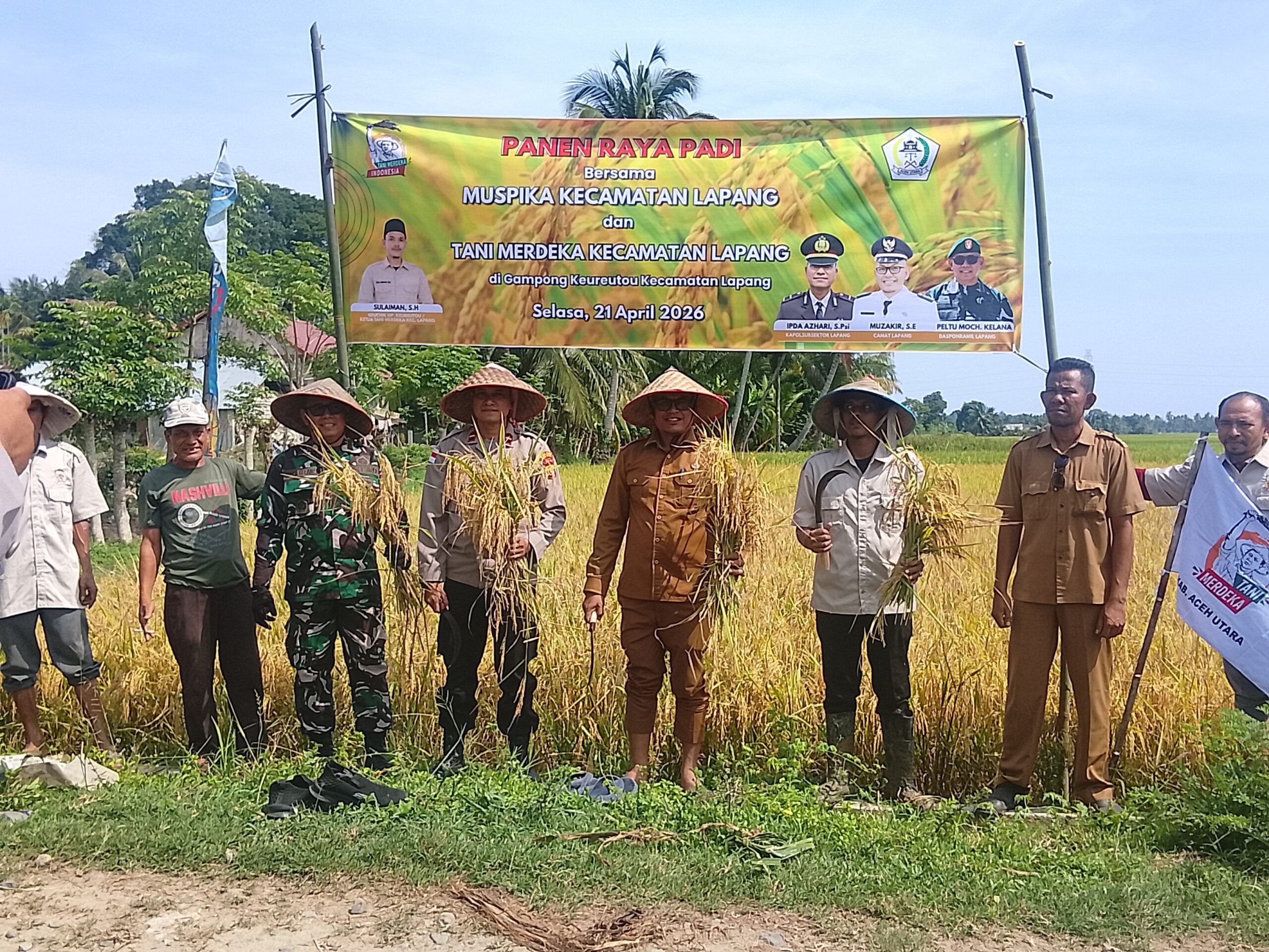 Dihadiri Unsur Muspika Kecamatan Lapang Kegiatan panen raya ini turut dihadiri unsur Muspika Kecamatan Lapang, di antaranya Camat Muzakir, S.E., Kapolsek Ipda Azhari, S.Psi., serta Danposramil Peltu Moch. Kilana.